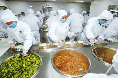 郑州市金水区文化绿城小学卫星厨房的工作人员正忙着为学生们备餐