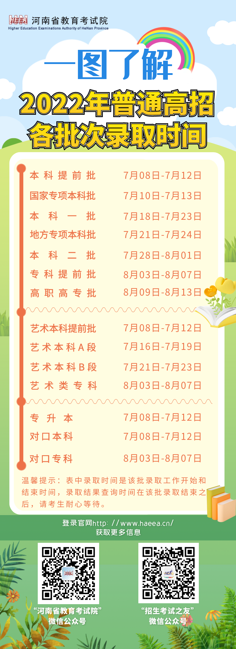 收藏!一图了解2022年普通高招各批次录取时间